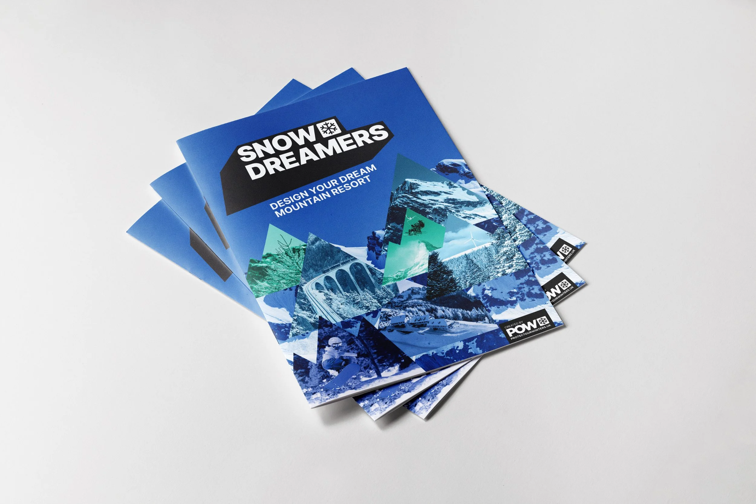 Design of playful activity kits for 5–11 year-olds who love snow sports, created for outdoors climate action charity Protect Our Winters.
