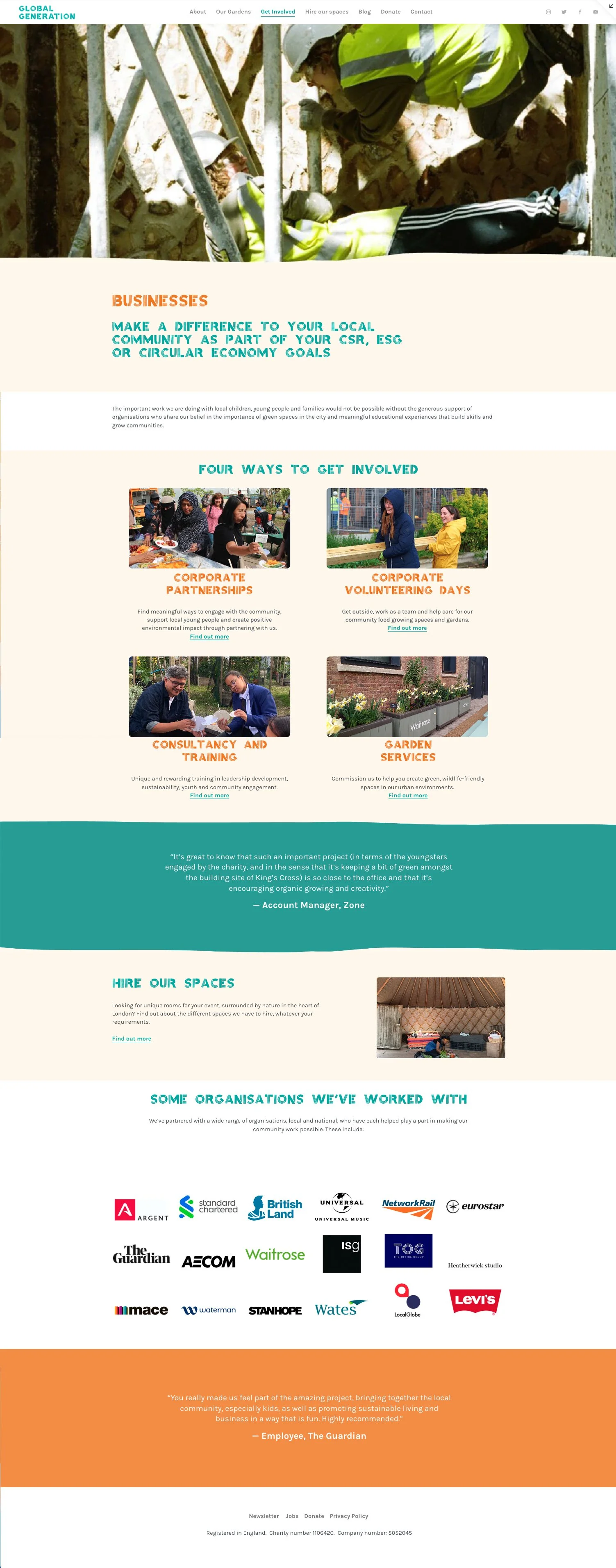 Redesign of Global Generation's website, with staff and young people. Workshops with the team helped established the site’s intended objectives, users and how it should act and feel. This fed into the development of a new content structure, rewriting all the content and a new visual identity.